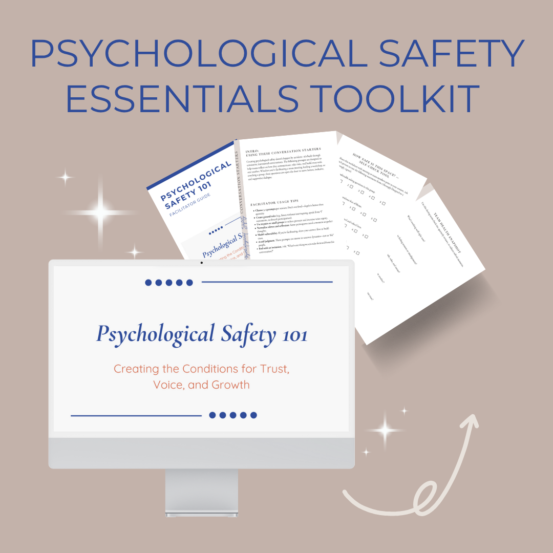 Get instant access to the Psychological Safety Essentials Toolkit—a set of ready-to-use tools trusted by facilitators, coaches, and people leaders who want to build trust, inclusion, and open dialogue in their teams.